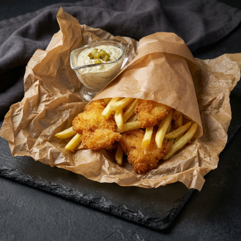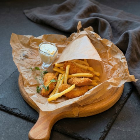 Куриное филе в сухарях панко с картофелем фри и соусом тартар