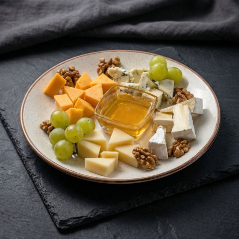 Сыр Дор блю, Камамбер, Пармезан, мёд, грецкий орех, виноград